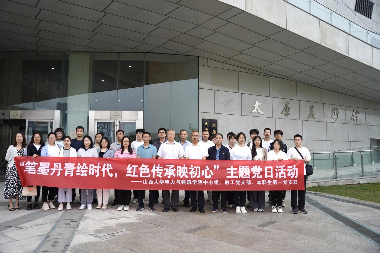 习近平总书记指出“要从当代中国的伟大创造中发现创作的主题、捕捉创新的灵感,深刻反映我们这个时代的历史巨变,描绘我们这个时代的精神图谱,为时代画像、为时代立传、为时代明德。”为进一步深入学习贯彻习近平新时代中国特色社会主义思想,加强支部建设,丰富党员活动,2024年6月5日上午151amjs澳金沙门党委中心组、教工党支部、本科生第一党支部在太原美术馆成功举办了“笔墨丹青绘时代,红色传承映初心”主题党日活动。