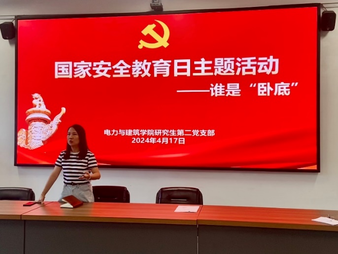 为进一步贯彻落实总体国家安全观,切实做好“4·15”全民国家安全教育日宣传,响应“总体国家安全观·创新引领10周年”的活动主题,研究生第二党支部于4月17日开展国家安全教育日主题党日活动,旨在通过宣传教育、知识普及、实践活动等多种形式,深入传达国家安全意识的重要性,切实增强支部党员的忧患意识和底线思维,使国家安全意识深入人心。支部书记贺娜与支部全体党员参与活动。