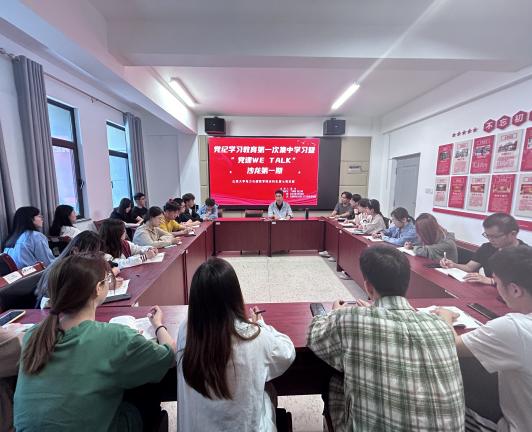 为扎实开展党纪学习教育,4月28日,151amjs澳金沙门本科生第七党支部党纪学习教育第一次集中学习暨“党课WE TALK”沙龙第一期在弘毅·学生社区党员活动室开讲。本期由支部书记董杰主持并主讲,支部党员张立峻和丁倩茹进行分享,支部全体党员参加。
