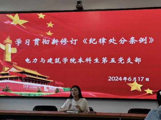 为切实推动党纪学习教育走深走实,6月17日下午,本科生第五党支部书记李莞舒以“严格执纪下功夫,遵规守纪强党性”为主题给支部全体学生党员讲授专题党课。