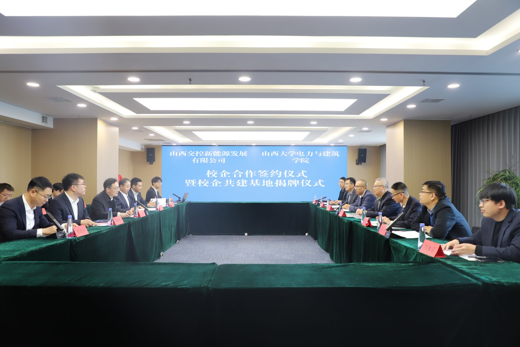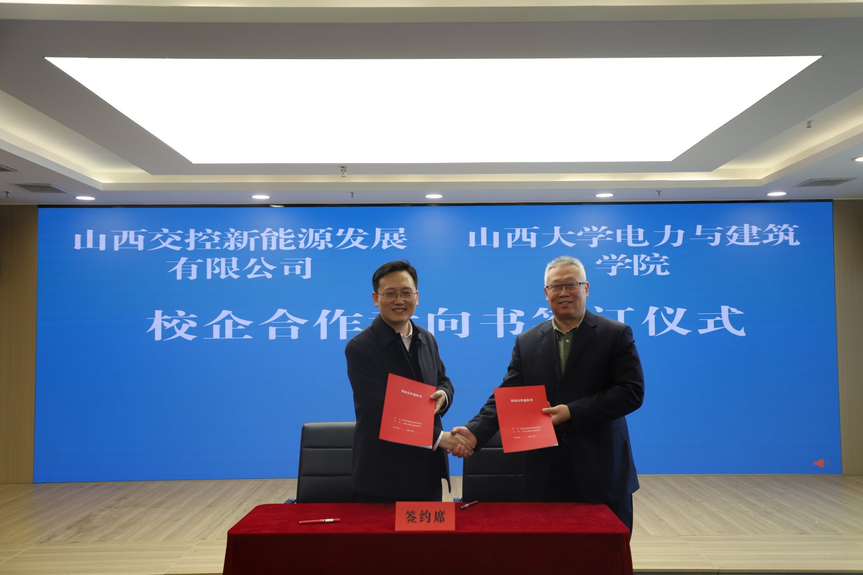 在双方代表的共同见证下,刘建书记与山西交控新能源公司总经理白斌正式签署了校企合作协议,标志着双方将在新能源技术研发、产业化应用、工程示范、人才培养等方面展开全方位合作。