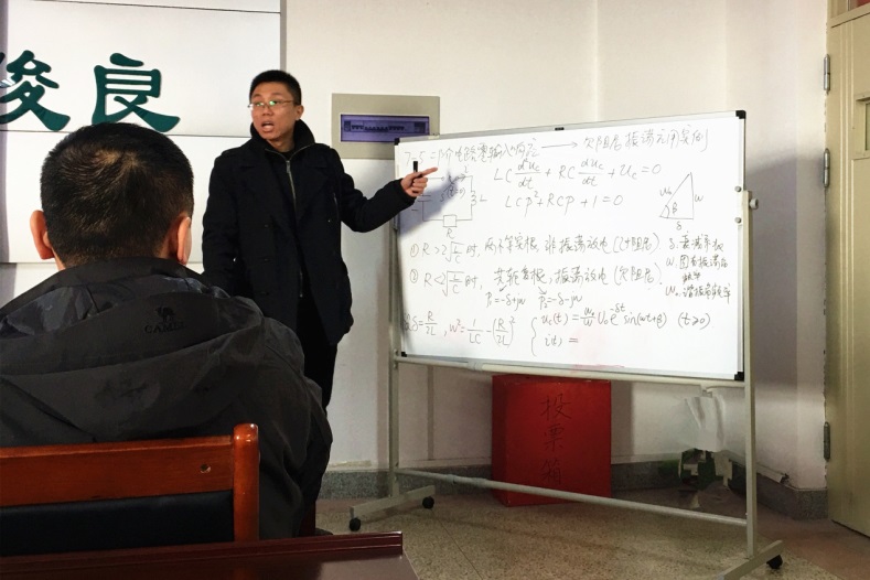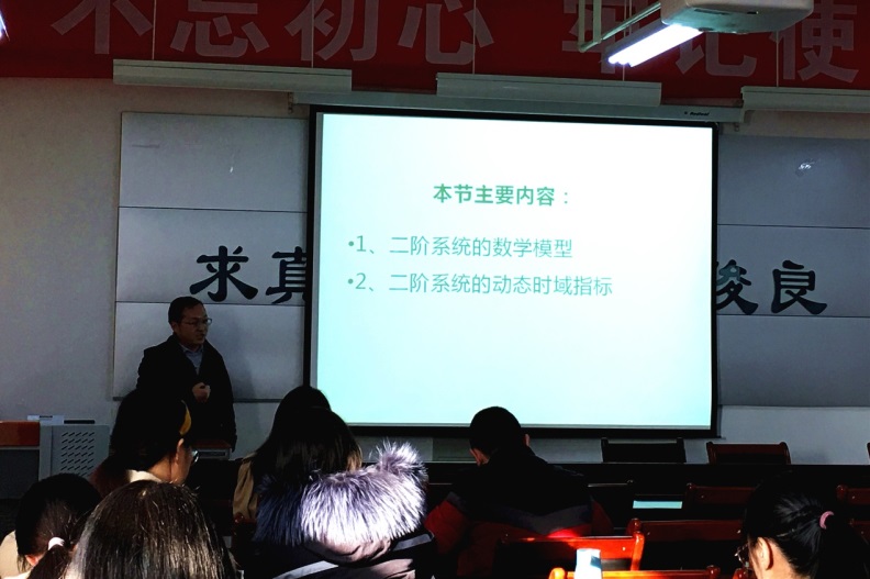 活动上,王宇老师以板书和PPT相结合的方式讲述了《电路》课程中“二阶电路的零输入响应”课题,由理论推导延伸到工程应用中的可控核聚变;李盼老师图文并茂介绍了专业核心课《自动控制原理》中的“二阶系统的数学模型和动态时域指标”知识点;刘芳老师形象生动地讲授了专业选修课《输配电电路运行》中“输电线路覆冰的防治”方面内容。最后武晓冬、田俊梅、吕高三位系主任分别做出总结,并就教学时间把控、PPT制作技巧、讲述内容完整性、课堂思政融入等方面提出意见建议。