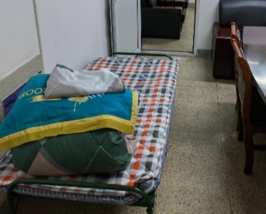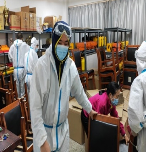 4月3日就入驻学校的董杰老师在7号当天从后勤部门领回被褥床铺脸盆暖壶等,并于当晚18:00前组织学生志愿者,把所有驻校老师的床铺一一派送到各自的临时住所,并帮老师们套好被罩铺好褥垫,学院安排的口罩、肥皂、免洗手消毒凝胶、酒精湿纸巾等防护物资及时派发给每一位老师,让大家做好自我防护。11号凌晨辅导员紧急入住学生公寓,后勤保障组与他们进行及时沟通,了解他们遇到的诸如喝水不便、带的衣服不够等生活不便和困难,一一做好详细记录,打包派专人送到相应的楼宇,确保入楼辅导员没有后顾之忧,做好封闭期间楼宇学生的各项管理工作。
