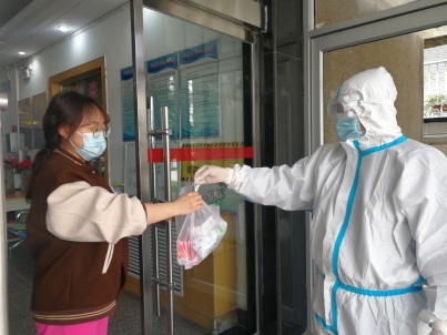 11-14日后勤保障组每天针对学生的各种需求开展工作,有的需要到指定教室指定位置拿回平常按疗程服用的药、有的同学身体不适需要到校医院代买药品、有的学生宿舍短缺体温计配送、有个别学生身体不适需要到校医院就医及时联系保卫处负责人安排转送、取校外就医的住院学生的医保资料、有毕业班学生通过自己的班主任提出需要打印就业协议、政审表之类的资料等等,一刻也不耽搁,及时办理。