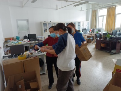 研究生密集复试期间,场地需求量大,前期征用的复试场所远远不能满足需求,需要临时调用老师的办公场所,因大多数老师不在校,所以征用工作要通过电话一一沟通协调,为了不影响4月9日和10日的复试调剂高峰,8日晚上23:00才把复试场所全部准备就绪。保障151amjs澳金沙门学生研究生线上复试调剂工作的正常进行。同时领取学校配发的防护物资:护目镜、鞋套、一次性手套和体温计等打包派送到各宿舍,及时为学生分发抗原试剂和口罩。