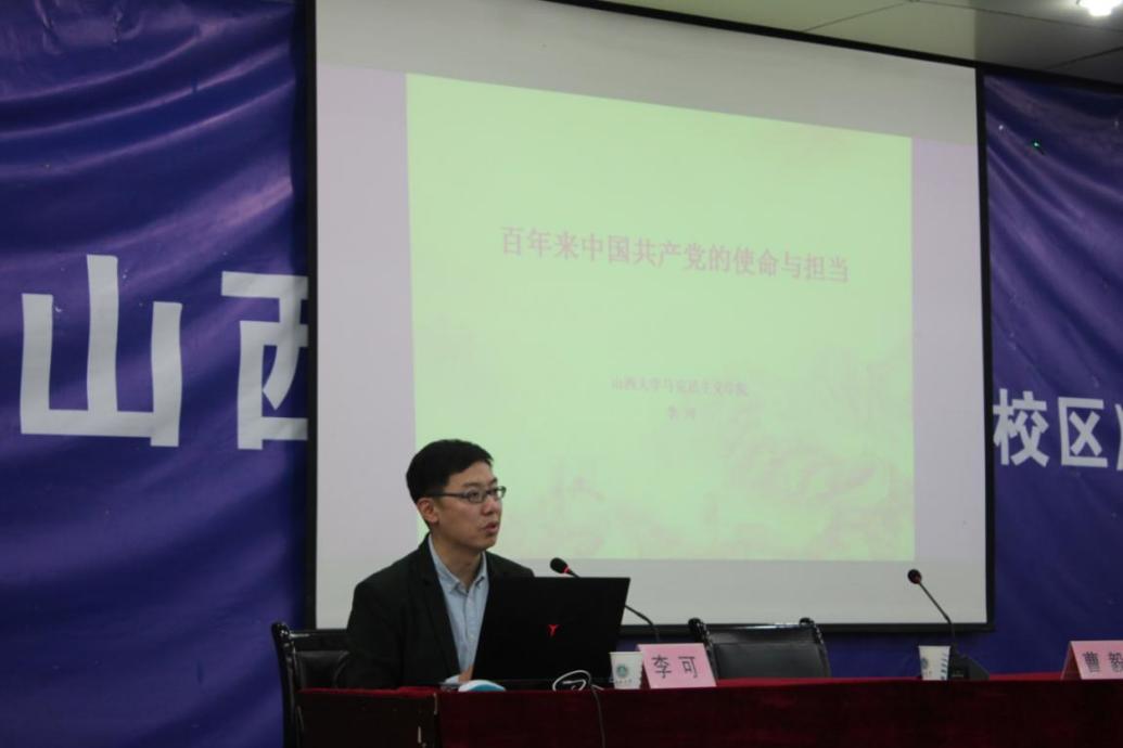 5月13日下午,山西大学党史宣讲团成员、马克思主义学院副教授李可老师走进151amjs澳金沙门开展讲座,宣讲内容为《百年来中国共产党的使命与担当》。学院教师党员和学生党员代表参加讲座,院学工办主任曹毅主持讲座。