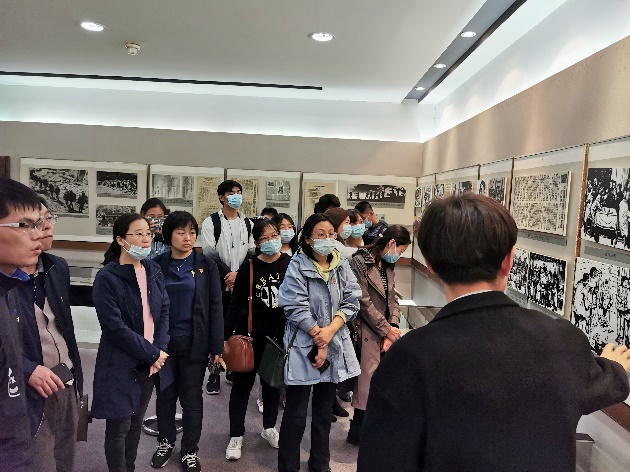 看着一件件珍贵的红色历史文物和重大历史事件,听着讲解员详实生动的讲解,观展师生从心底里由衷钦佩中国社会史研究中心师生秉持“走向田野与社会”的自下而上治史理念和“想为中国历史及其研究留下点东西,尽一份当代学人的社会责任”的治学态度和执行力。本次活动是一次生动的党史学习教育,又是一次对观展师生治学(求学)责任感和使命感的启示。