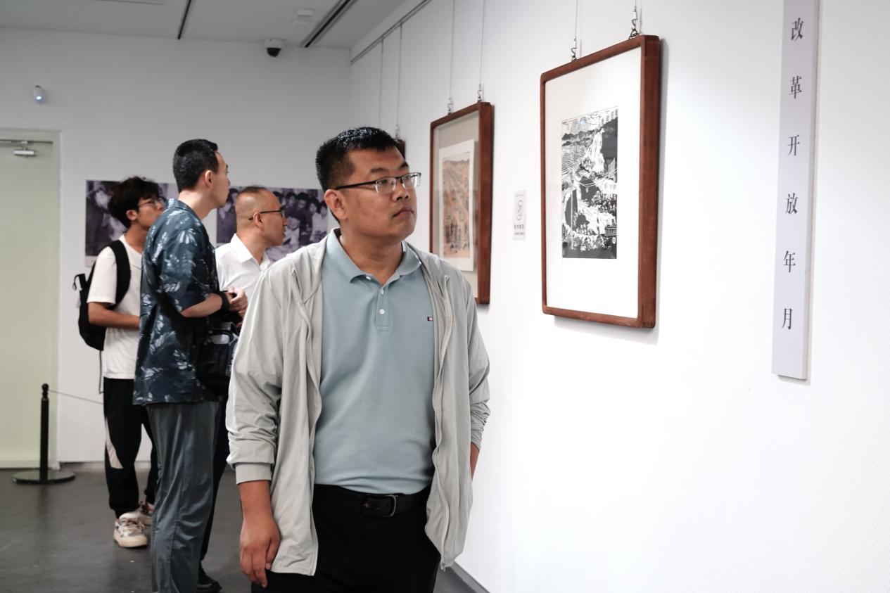 三楼5展厅(火花的锤炼)、7展厅(力群版画美术展),以革命历史为时间线,体悟近代山西“创作木刻”版画所蕴藏的民族精神;最后到达四楼9号(壁立太行)、10号(舟行万里)展厅,宏幅巨制的画卷再现了革命战争历史,中西结合的艺术风格彰显着两位艺术家深厚的艺术功底和对传统文化的热忱。师生党员们沉浸在艺术的世界里,感受着笔墨丹青所绘制的时代画卷和红色精神的传承,对两位艺术家的作品和创作精神表示了高度的赞赏和敬意。