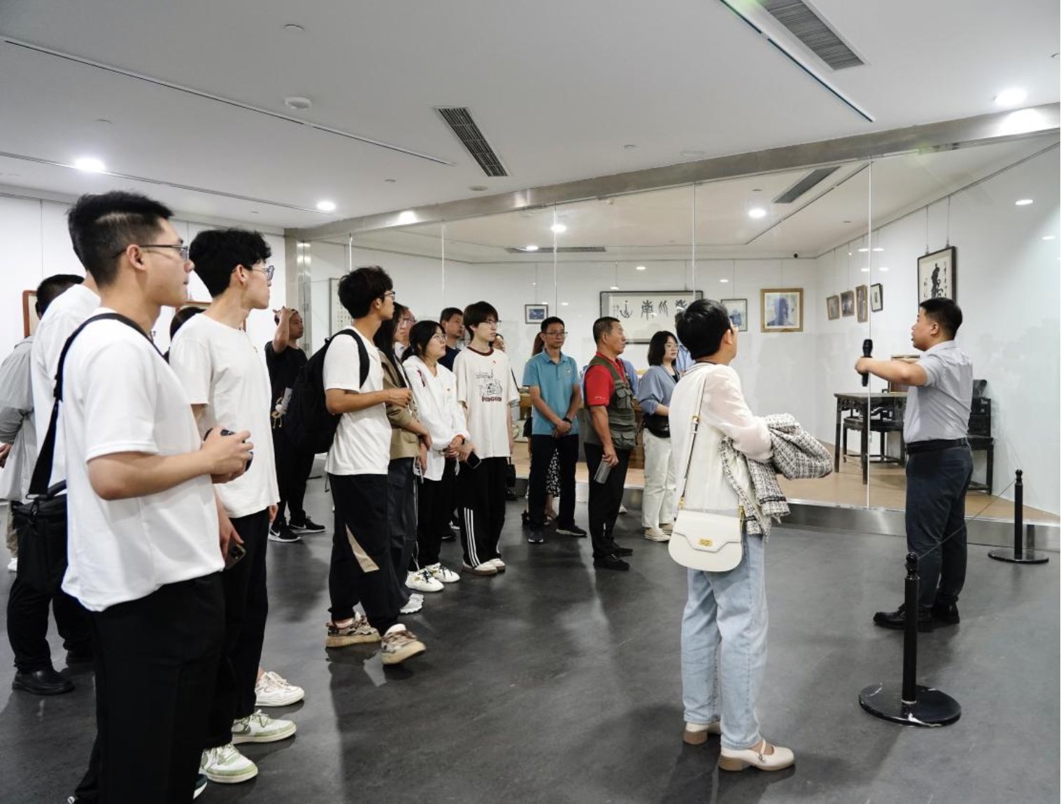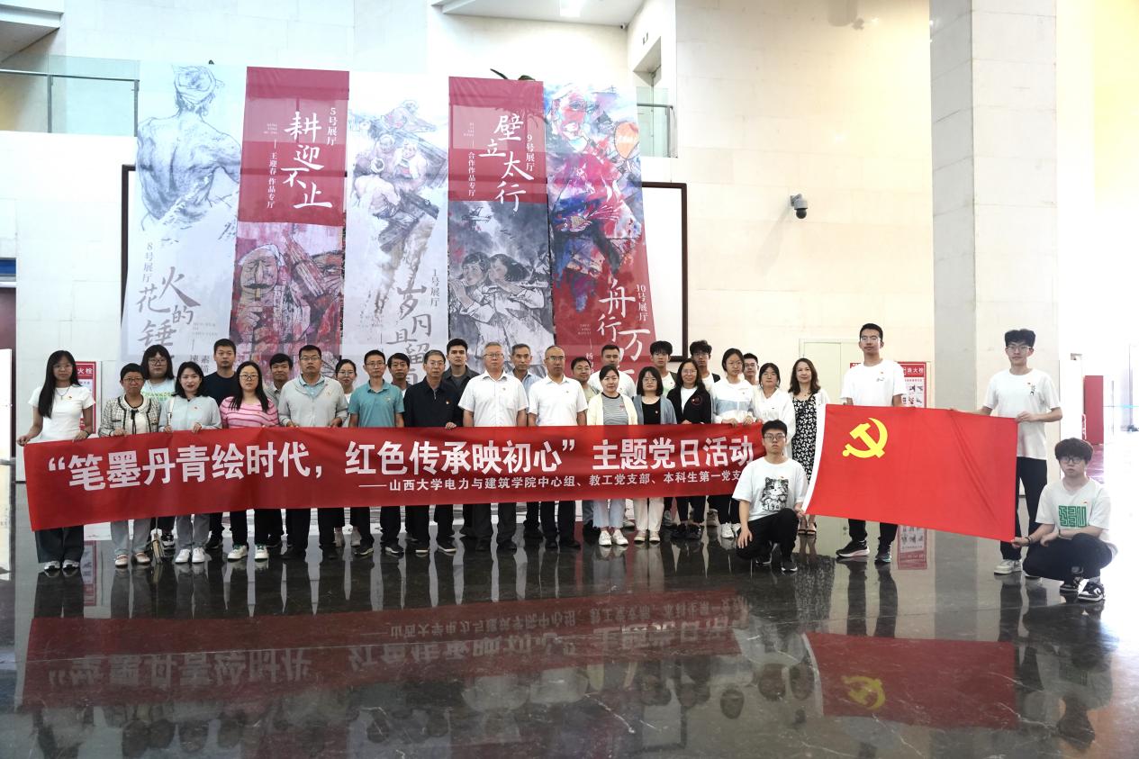 习近平总书记指出“要从当代中国的伟大创造中发现创作的主题、捕捉创新的灵感,深刻反映我们这个时代的历史巨变,描绘我们这个时代的精神图谱,为时代画像、为时代立传、为时代明德。”为进一步深入学习贯彻习近平新时代中国特色社会主义思想,加强支部建设,丰富党员活动,2024年6月5日上午151amjs澳金沙门党委中心组、教工党支部、本科生第一党支部在太原美术馆成功举办了“笔墨丹青绘时代,红色传承映初心”主题党日活动。