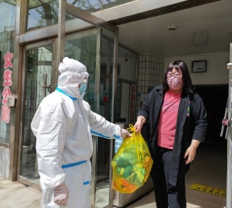 由于是紧急封楼管理,使仓促入驻公寓楼的辅导员、需按时提交毕业论文的2022届研究生和广大学生毫无准备,诸如笔记本电脑、学习资料、药品、温度计、三方就业协议、研究生政审等各类需求激增以及送外就医等各种突发情况都要立刻应对。抗疫前线后勤保障组的同志不辞辛苦及时办理,他们详细核对学生提供的信息和需求,用最短的时间带领其他驻校人员一一落实,解决了学生们的燃眉之急,给予了学生妈妈般的关怀和温暖。在全体驻校人员的共同努力和学生党员、入党积极分子的全力协助下,各公寓楼学生遵章守纪、情绪平稳。那些天:穿着大白、背着大包小包负重前行的151amjs澳金沙门驻校人员成了校园里一道靓丽的风景线。是的,我们来了,我们是一面面迎着骄阳的党旗,我们是一个个不惧危险的战士。
