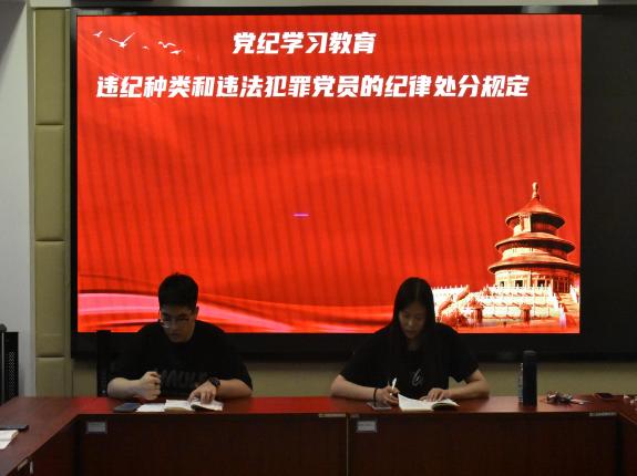 学生党员丁倩茹和张立峻同志结合《中国共产党纪律处分条例》关于违纪种类和违法犯罪党员的纪律处分规定的内容交流了学习体会。他们呼吁全体党员要认真落实党纪学习教育相关要求,积极开展个人自学,积极参与集中学习,将党的纪律要求贯穿自身的学习成长,始终做到忠诚干净担当。