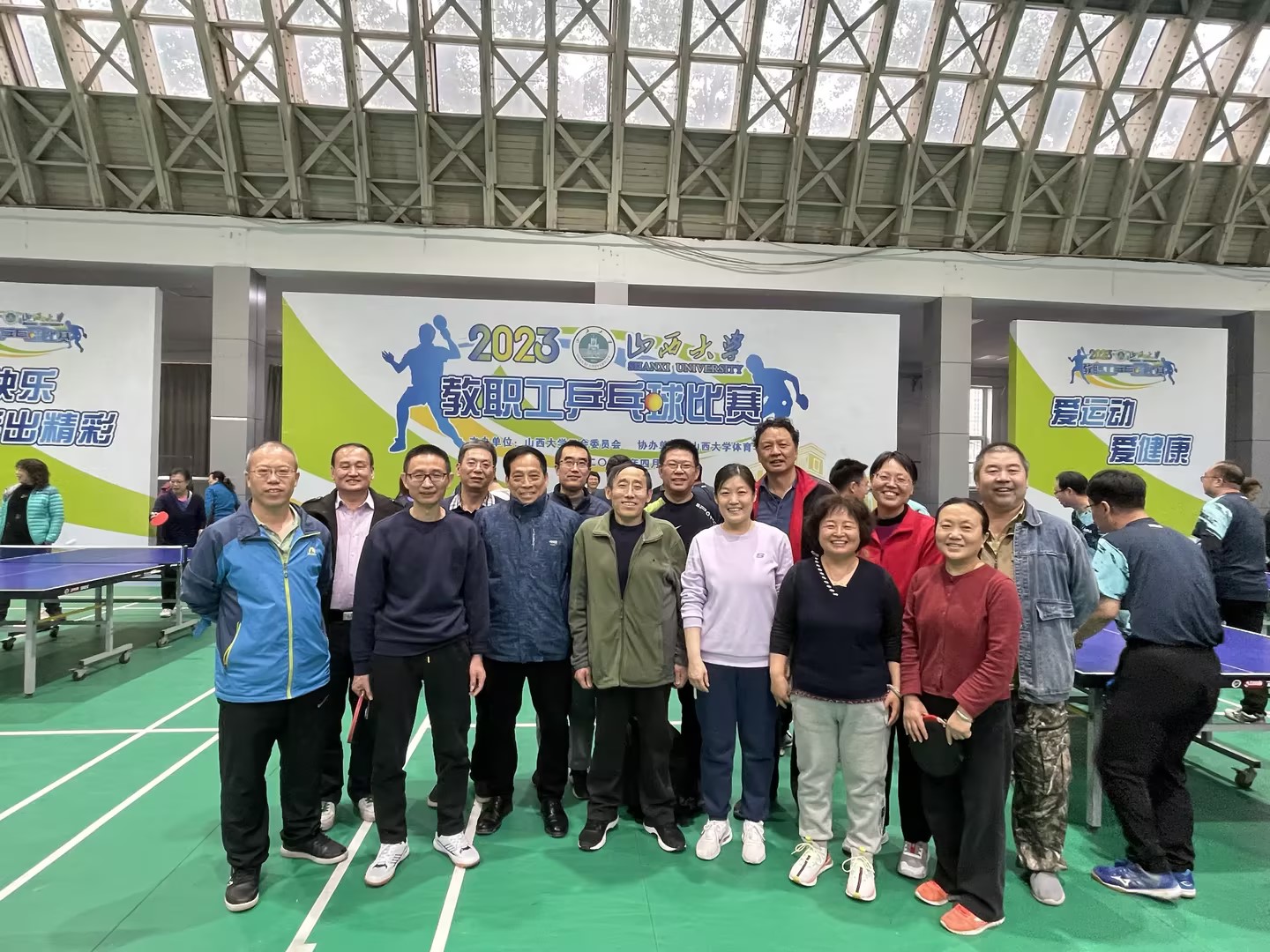 4月22日、23日,校工会举办了2023山西大学教职工乒乓球比赛,此次比赛设混合团体、男子单打、女子单打三个项目。151amjs澳金沙门分工会派出两支代表队共20人参加了混合团体项目的比赛,其中有5名男队员和1名女队员分别参加了男子单打和女子单打项目的比赛。在团体项目比赛中,队员们团结协作、相互鼓励、默契配合,一路过关斩将,成功杀入决赛,最终在38支参赛队中获得团体亚军。男子单打也取得了第三名的好成绩。