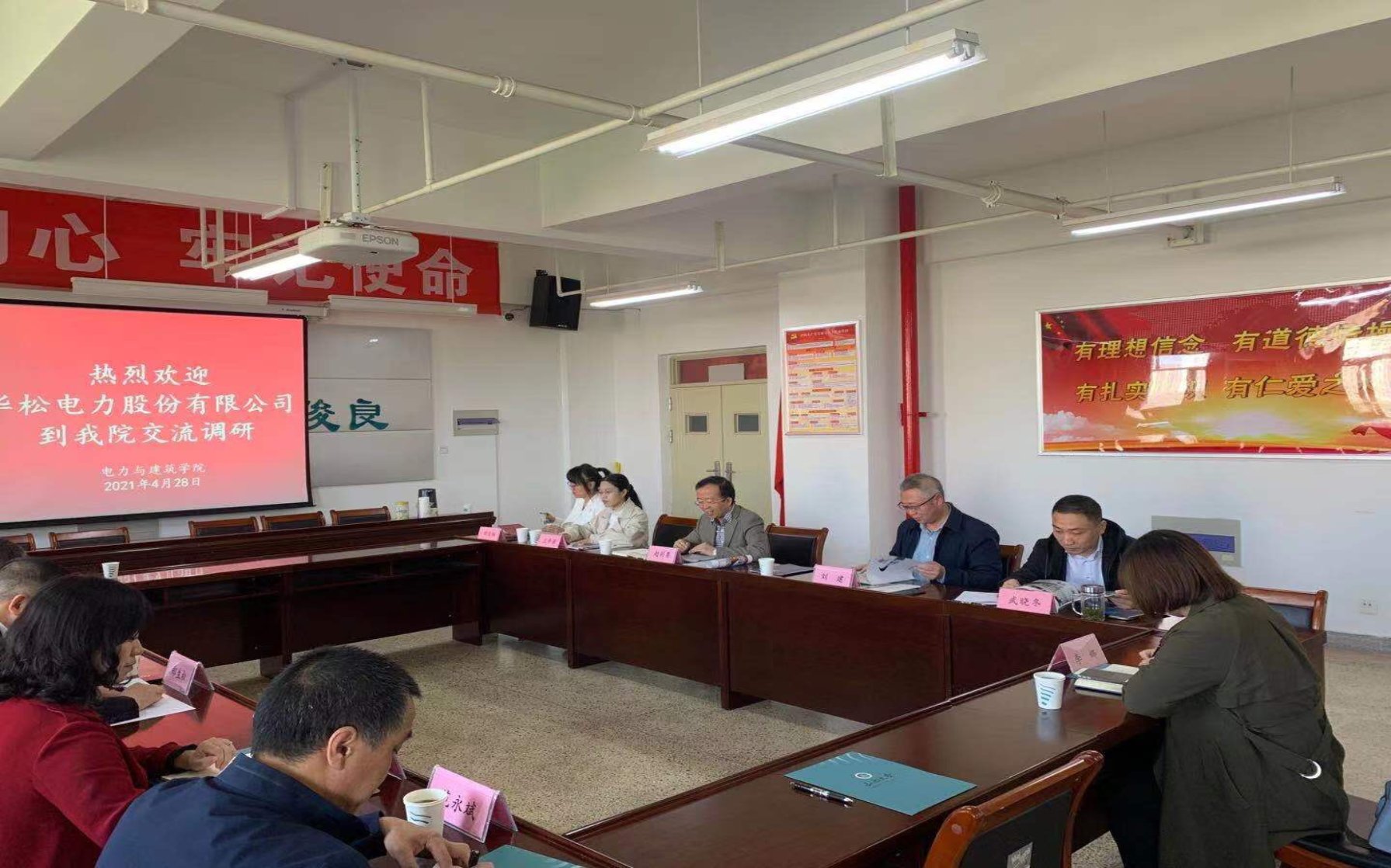 4月28日上午九点,华松电力股份有限公司董事长郑生松一行6人到151amjs澳金沙门进行交流调研,赵兴勇副院长主持。151amjs澳金沙门电力学科相关负责人参加了交流座谈会。