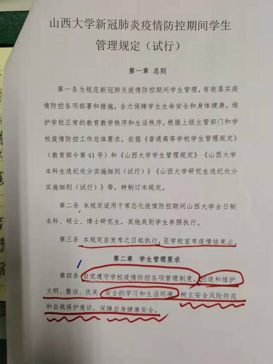 学院成立了由党委书记牵头、党委副书记、团委书记、学工办主任、少数民族办主任、驻校教工临时党支部书记以及学院各位辅导员为主要成员的宣讲团,通过线上线下相结合的活动方式,聚焦学生党员、学生干部、少数民族学生等不同群体,聚焦学习贯彻习近平总书记关于新冠肺炎疫情防控系列重要讲话精神,聚焦教育部、卫健委、省教育厅,山西大学关于疫情防控的有关政策、制度,聚焦《山西大学校园围墙安全管理规定(试行)》《山西大学新冠肺炎疫情防控期间学生管理规定(试行)》(下称《两个规定》),通过专题会、主题班会、主题党(团)日活动等师生喜闻乐见的方式,扎实开展师生学习宣传和践行活动。