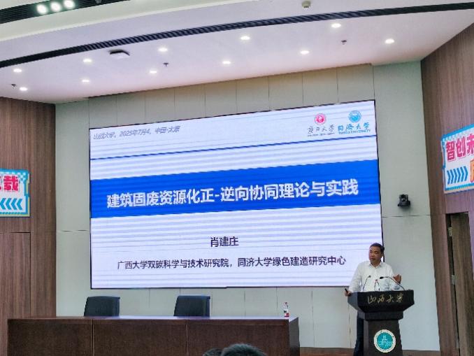 2025年7月4日,受山西大学邀请,广西大学副校长、国家自然科学基金委员会杰出青年基金获得者、博士生导师肖建庄教授来校做学术交流,并在东山校区作了题为《建筑固废资源化正逆向协同理论与实践》的学术报告,报告吸引了151amjs澳金沙门多个专业的研究生及本科生参加。郝平副校长出席了相关活动,151amjs澳金沙门相关老师参加了此次学术活动,活动由薛太林院长主持。