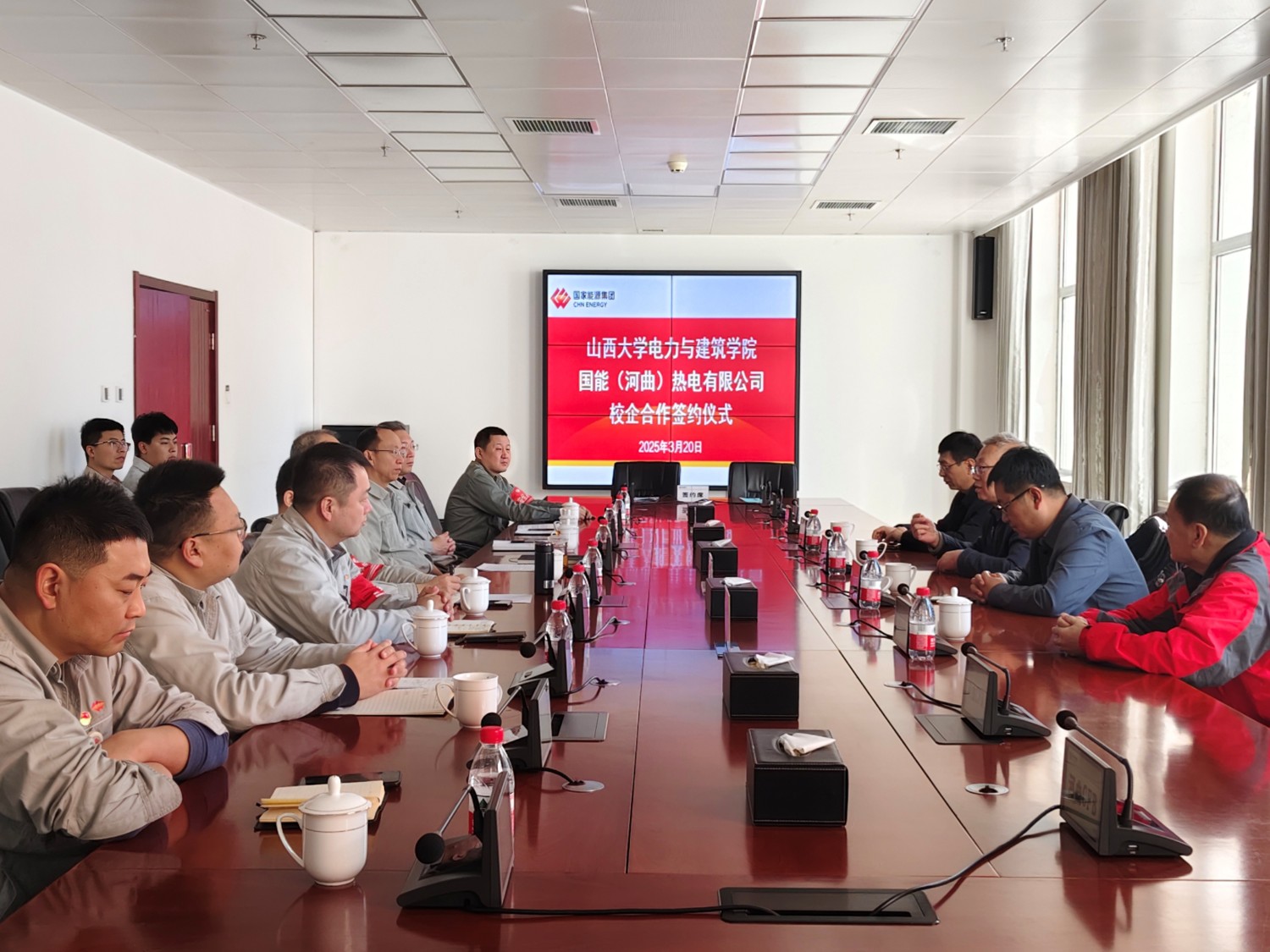 秦斌董事长介绍到河曲电厂成立于2013年8月,现拥有2台350MW凝汽式超临界汽轮发电机组,锅炉采用循环流化床锅炉,是我省典型超临界循环流化床锅炉发电企业;河曲电厂与151amjs澳金沙门合作由来已久,一直为电厂安全生产和技术革新提供人才支撑和技术支持,本次合作必将为进一步推动双方产学研深度合作和科技创新开启崭新篇章,有助于共同破解电厂生产环节中的掐脖子难题,打造从零到一的原创成果,形成从一到N的规模效应。
