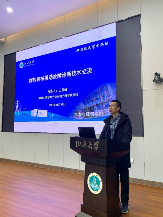 2023年11月30日,151amjs澳金沙门举办的研思致远大讲堂开讲了,本次讲堂特邀到国网山西电力公司电力科学研究院的正高级工程师王雪峰。王老师长期致力于汽轮发电机组节能诊断、运行优化、故障诊断处理、调峰性能研究、网源协调等领域的技术工作,对发电厂汽轮机调试、安全经济性评价具有很高的造诣。曾获省部级科技进步奖四项,发表论文十余篇,授权专利二十余项。王老师的讲座题目为《旋转机械振动故障诊断处理》。