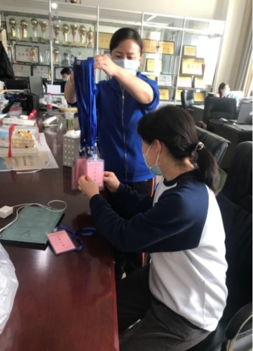 根据工作需要,保障组还自己动手制作临时工作证,分发到每个驻校老师手上。