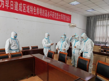 研究生密集复试期间,场地需求量大,前期征用的复试场所远远不能满足需求,需要临时调用老师的办公场所,因大多数老师不在校,所以征用工作要通过电话一一沟通协调,为了不影响4月9日和10日的复试调剂高峰,8日晚上23:00才把复试场所全部准备就绪。保障151amjs澳金沙门学生研究生线上复试调剂工作的正常进行。同时领取学校配发的防护物资:护目镜、鞋套、一次性手套和体温计等打包派送到各宿舍,及时为学生分发抗原试剂和口罩。