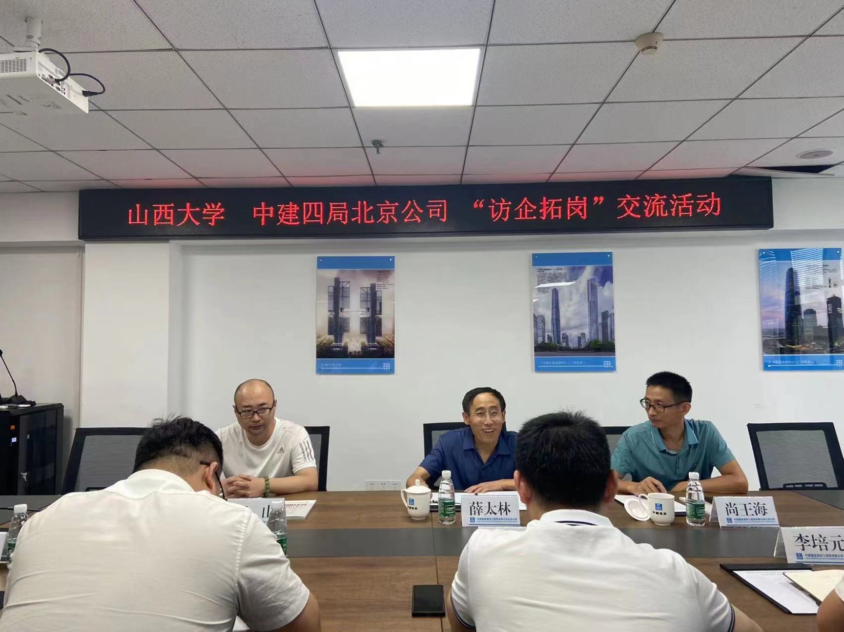 2022年8月17日下午,院长薛太林、党委副书记尚王海及学院就业办公室前往中建四局河北分公司(太原城市公司)开展访企拓岗交流活动。中建四局河北分公司执行总经理洪长亮、河北分公司副总经理赵丰瑞等参加了交流,双方就加强校企合作、人才培养等方面进行了深入交流座谈。