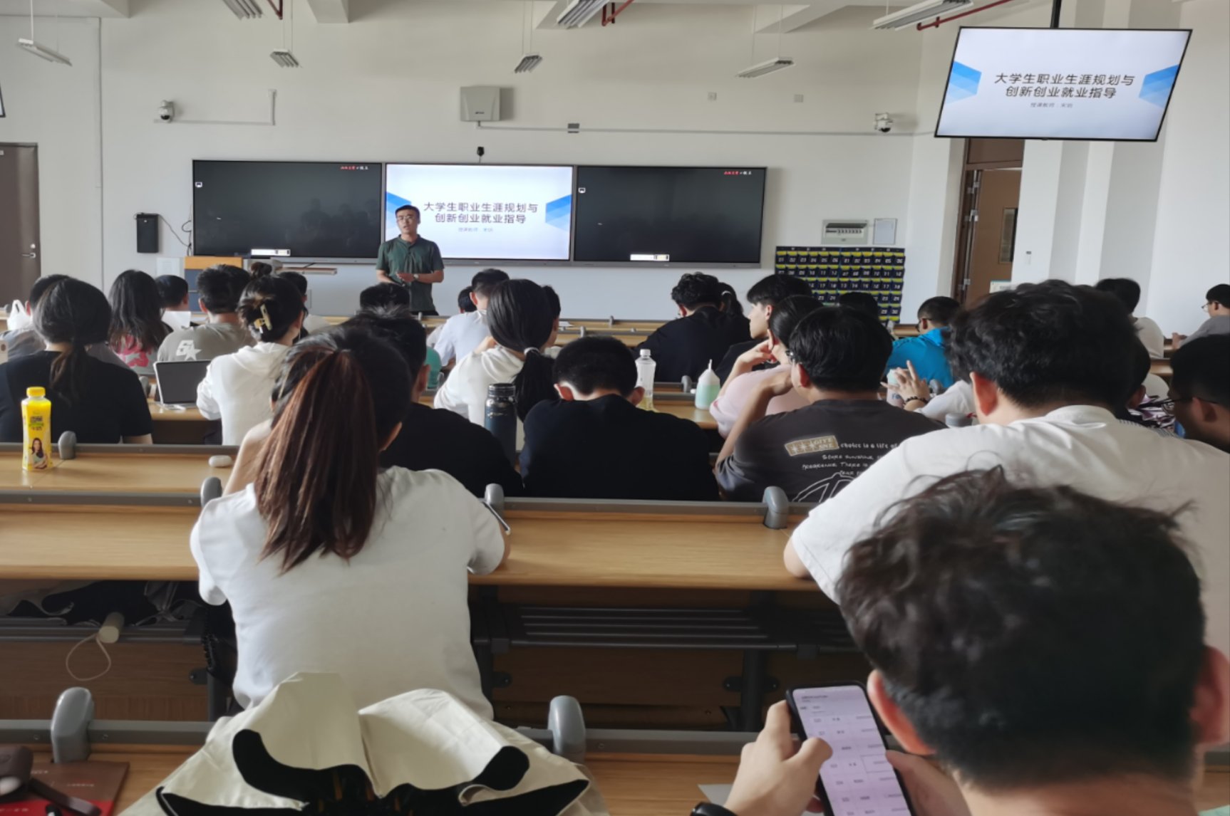 互动交流环节,同学们纷纷向学长请教,提出自己的困惑,李洋一一解答,课堂氛围活跃。