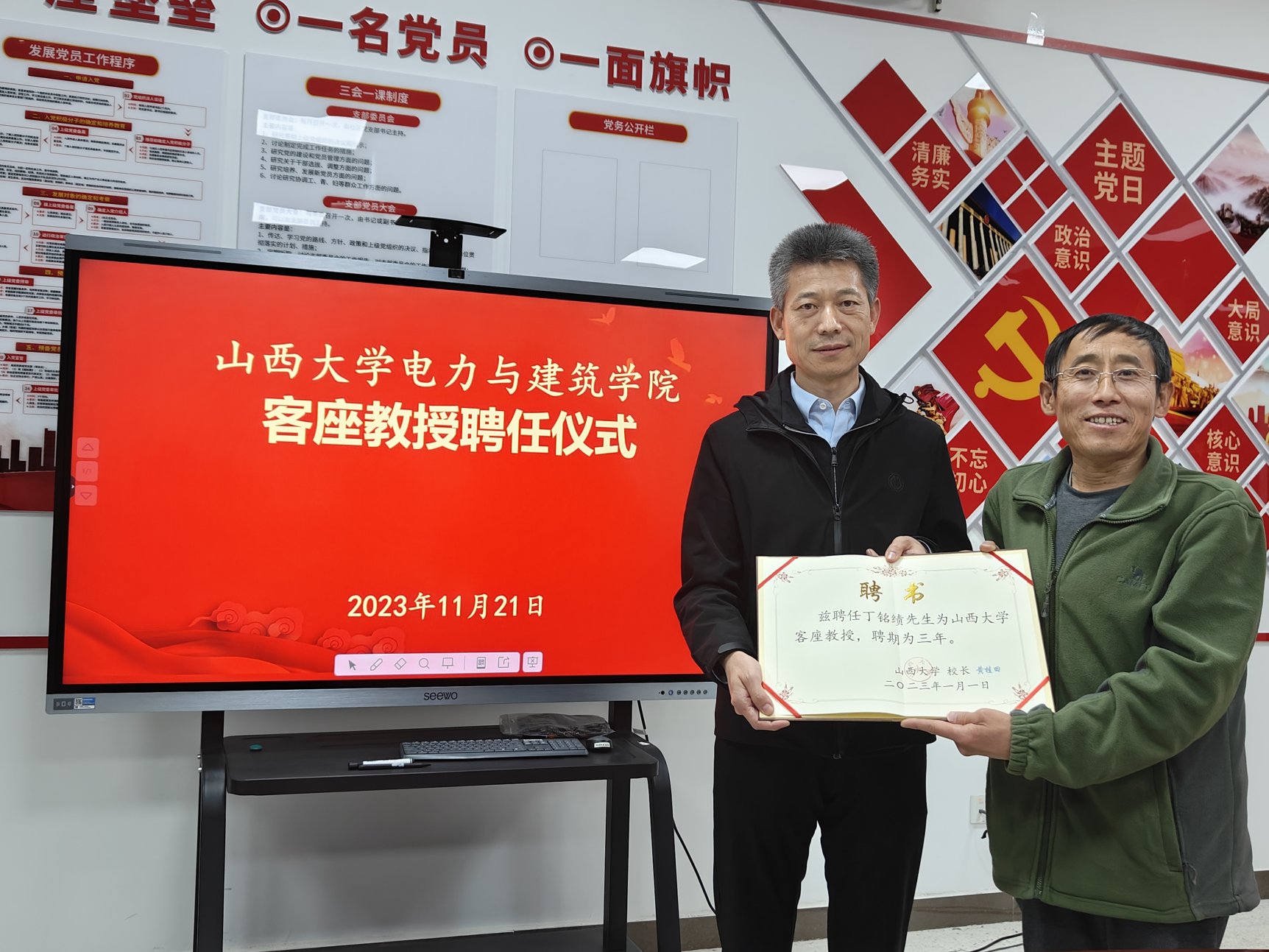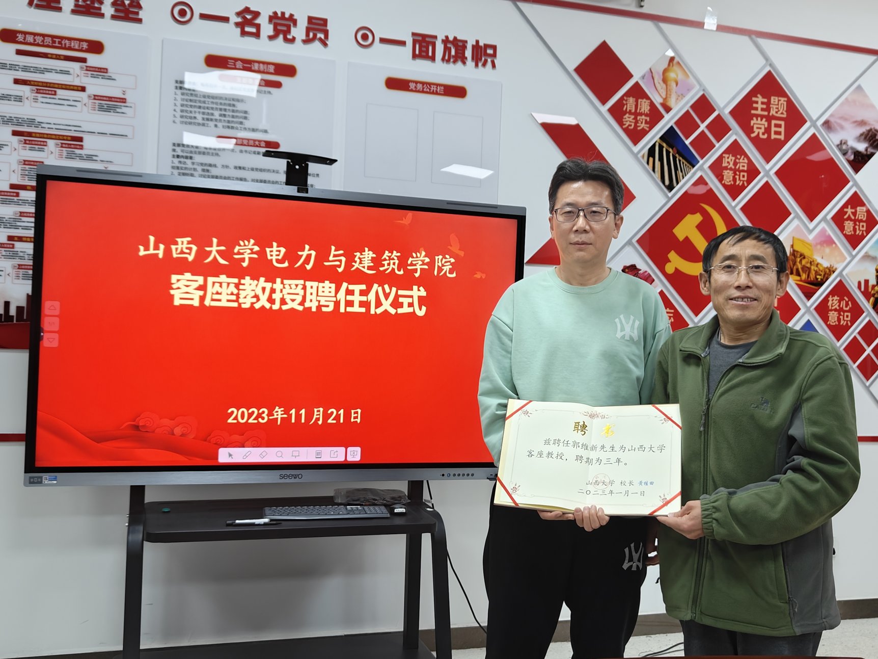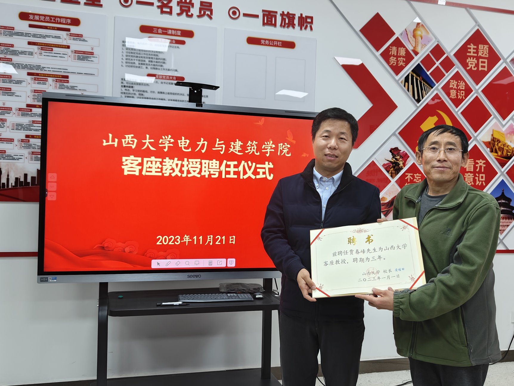 为加强校企合作、深化产教融合、提升育人质量,151amjs澳金沙门于11月21日举行客座教授聘用仪式,聘请山西焦煤山西国际技术中心一级专家丁铭绩主任、山西燃气集团技术管理部郭维新部长、山西省交通环境保护中心站(有限公司)工程技术中心贾春峰主任、山西交控科技转化有限公司刘少文董事长、山西交通科学研究院集团有限公司副总经理张军、晋能控股清洁能源科技股份公司总经理杨立友为151amjs澳金沙门客座教授。151amjs澳金沙门院长薛太林、书记刘建、副院长牛玺荣、副院长李经宽、能源动力学科主任武晓冬、土木建筑学科主任杨晶出席仪式,李院长主持仪式。