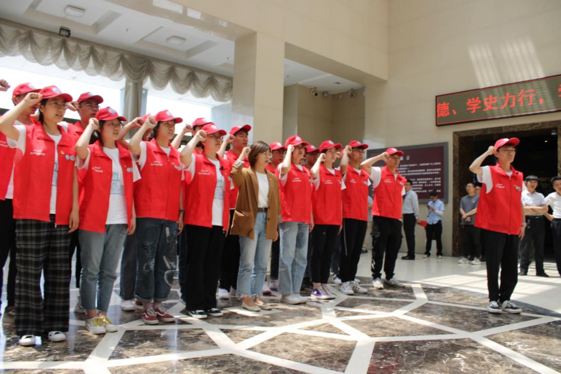 22日上午,实践队历时四小时来到了革命老区兴县,受到了团县委书记白磊和开放大学校长白树荣的热情接待,上午参观了晋绥边区革命纪念馆,在这里党员们举起右拳,向党旗郑重宣誓,王泽林同学还即兴唱起了《智取威虎山》选段,大家在红色氛围中接受着革命精神的洗礼。