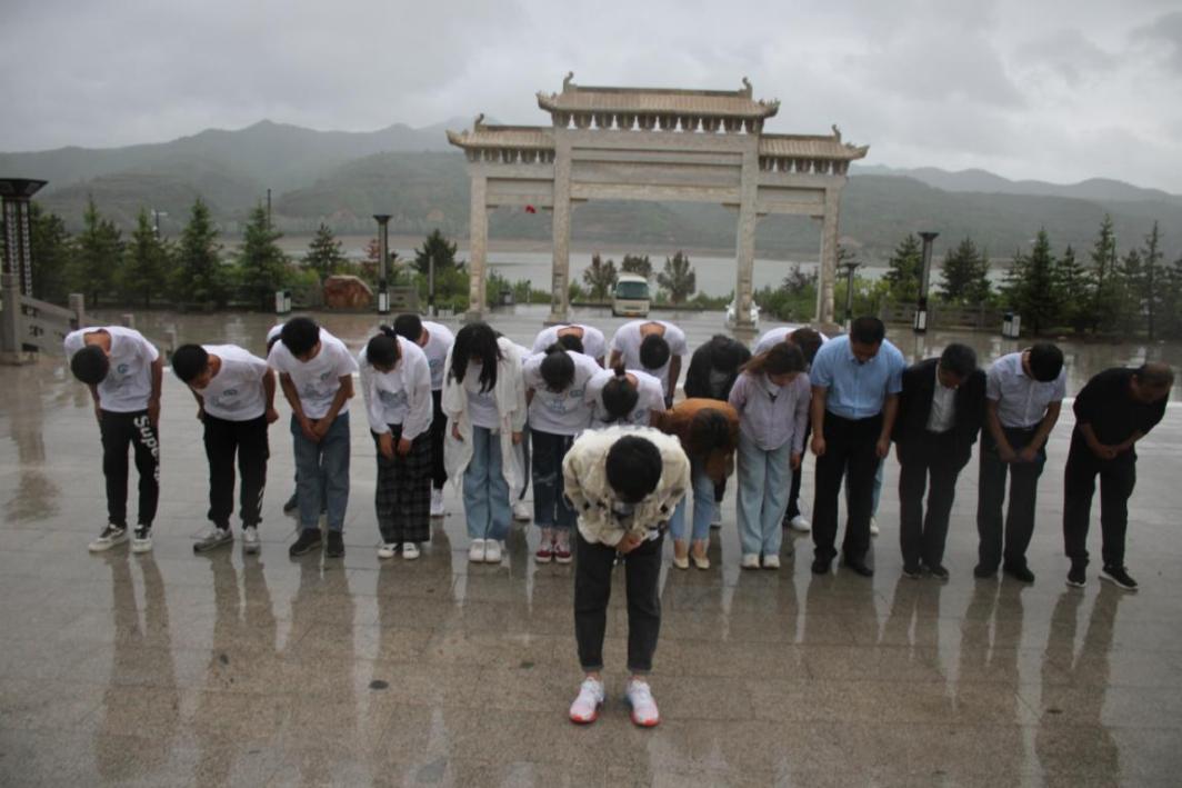 下午3点时分,气温骤降,风雨交加,实践队队员不顾天气恶劣,冒着大雨来到了位于兴县东会乡庄上村的晋绥解放区烈士塔和“四八”烈士纪念馆瞻仰烈士,并举行了献花默哀仪式。同学们被革命先辈可歌可泣的英雄事迹和革命精神深深感染,听着毛泽东写的《向“四·八”遇难烈士致哀》祭文时,在场的师生都情不自禁地流下了眼泪。电本1904班张晓宇表示“我们永远不会忘记这个承载着万民悲痛的日子——1945年4月8日!不会忘记这些铭刻在中国共产党历史上的光辉名字!”,建环2001班郭丁榕说这次活动收获特别大,虽然路途遥远,天气恶劣,但这次学习经历让我们对革命年代的艰苦有了更加深刻的体会,也更加明白今天的幸福生活正是革命先烈用鲜血和生命换来的,沧海桑田,革命先烈将永远受到人民的敬仰和缅怀。