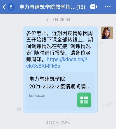 4月11日,为配合学校疫情防控需要全面停课,及时准备了分步实施授课预案,4月15日再次恢复线上授课。