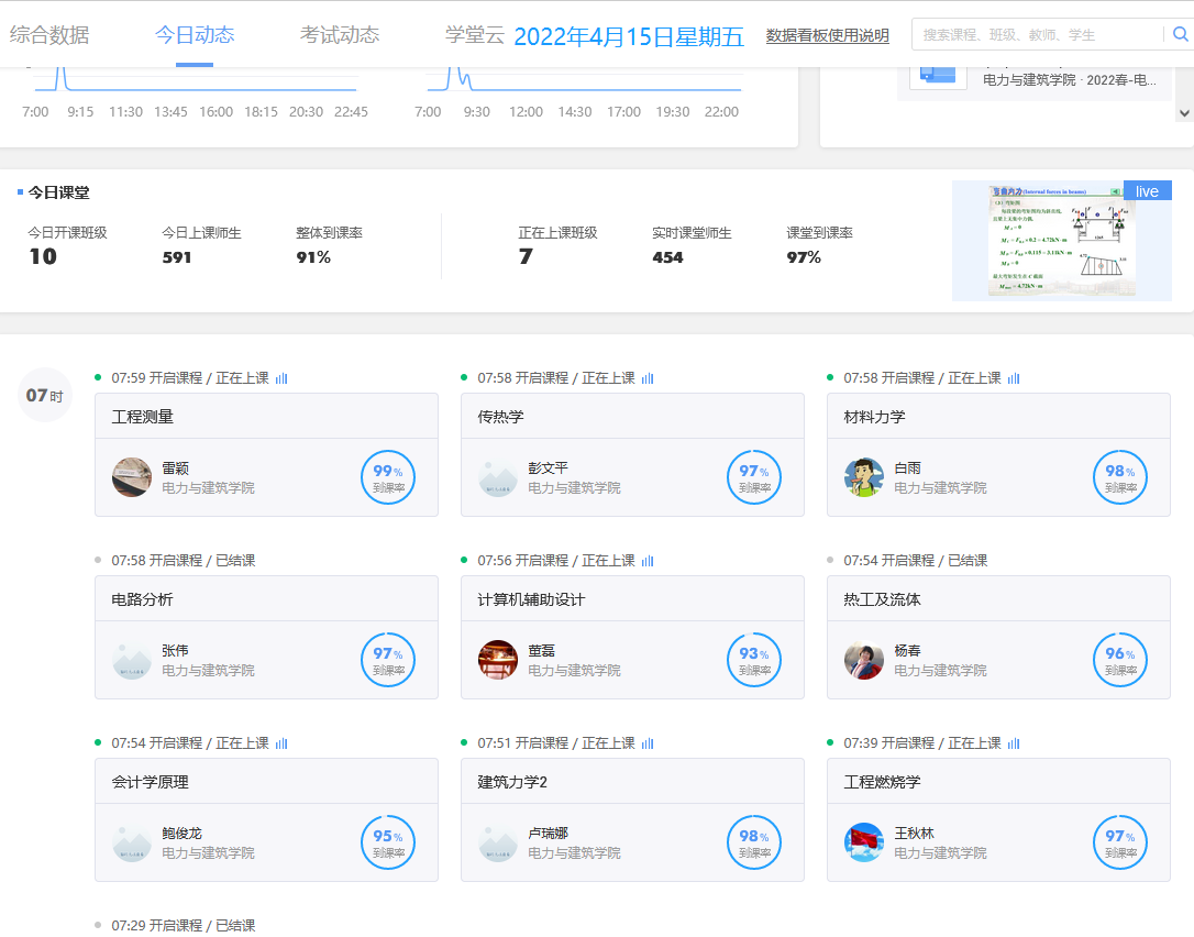 为保障线上教学质量,学院建立了一支由学院领导、学院教学指导委员、教研室主任、教学秘书、驻校教师和辅导员、班主任组成的在线督导与线下巡查队伍,多管齐下,利用“教-学-评-管”四位一体线上教学平台,对疫情防控期间本科生线上教学情况进行有效督导,形成全院共同开展线上教学质量管理工作的协同机制,确保线上教学的意识形态方向不偏,教学质量不减。在线到课率基本都在95%-100%,到课情况良好。