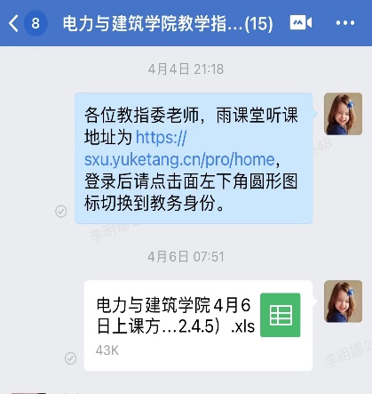 4月6日,根据疫情防控安排,将线上、线下混合教学模式全部转为线上教学,及时调整了线上授课时间安排。毕业设计利用企业微信、雨课堂、腾讯会议线上开展。