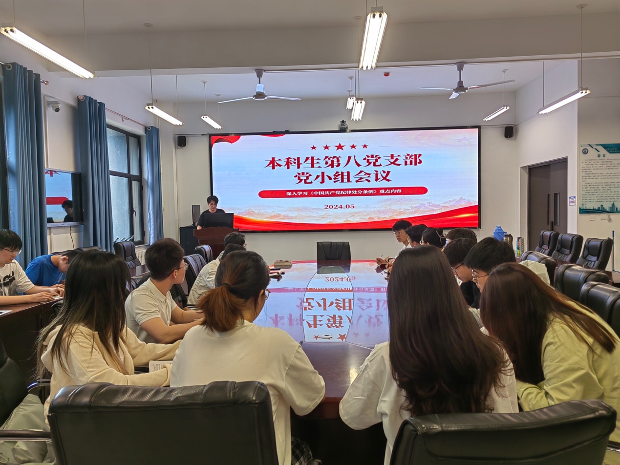 为了深入学习贯彻习近平总书记关于党纪学习教育的重要讲话精神,加强党的纪律建设,推动全面从严治党向纵深发展。本科生第八党支部第三党小组于5月10日下午在致远C座409会议室开展了“党纪学习教育”主题党日活动。除第三党小组的全体党员外,范围扩大到组内的本次发展对象。活动由组内党员谷铜林同志主持,支部书记高山列席参加了本次活动,并总结讲话。