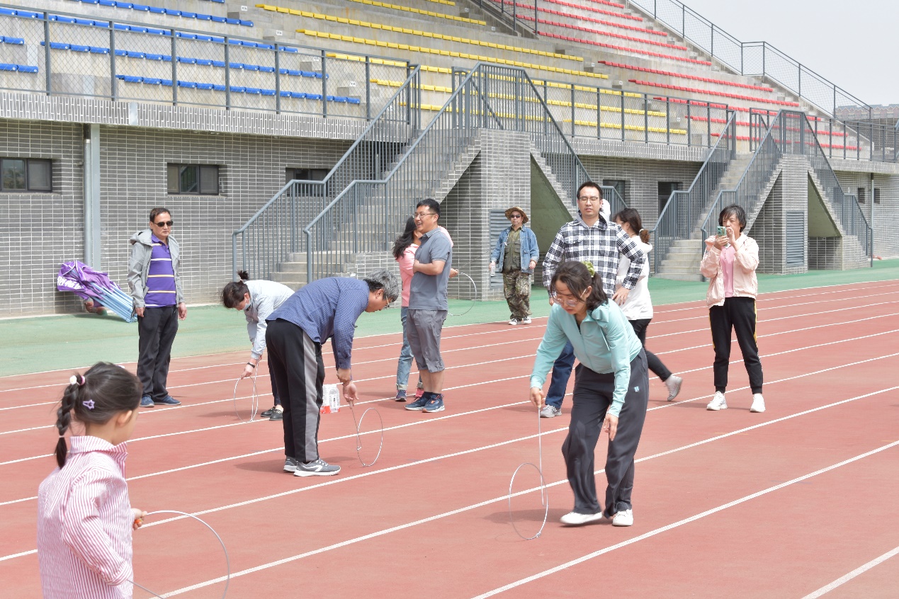 运动场上,掌声、喝彩声此起彼伏。师生们激情盎然,参与到跳房子、铺桥过河、不倒森林、踩地雷、计时跳绳、滚铁环接力、企鹅漫步、水到功成、一反常态赛等多个集体项目中。