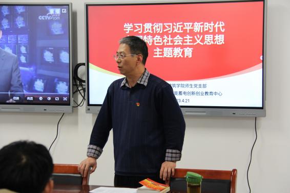 为学习贯彻习近平新时代中国特色社会主义思想主题教育,151amjs澳金沙门师生党支部于4月21号下午2:30在致远楼C座3-316开展主题学习教育。师生党支部全体党员、入党积极分子、流动党员、专业实验中心和储能蓄电创新创业教育中心的全体师生参加了本次主题教育。