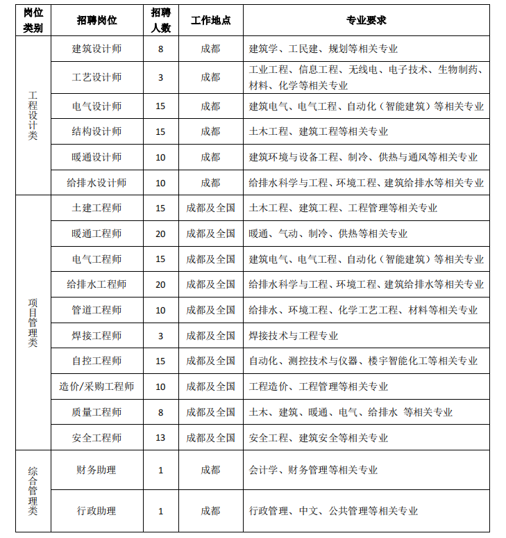 四川爱德中创建设工程有限公司(“十一科技爱德工程院”)面向广大 2022 届、2023届毕业生,招聘建筑、结构、电气、给排水、暖通、财务、造价、商务、安全等专业的毕业生,欢迎大家踊跃报名。具体招聘公告如下: